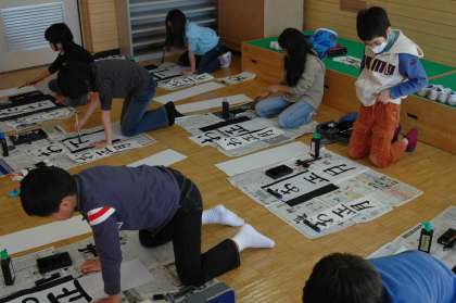 今日から授業が始まりました。どの学年・学級でもスタートは書き初めからです。心をこめて気持ちを集中して鉛筆や筆を走らせました。子供たちの真剣な活動の様子をご覧ください。3年生は初めての筆を使っての書き初めです。