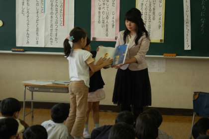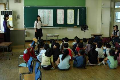 「心豊かにかかわり合い、学び合う児童の育成」を研究主題として1年間研究に取り組んでいます。今日は1年生の授業をとおして全教員で研究を深めました。担任の新井真由美先生の指導のもと、1年生の子供たちが張り切って勉強しました。講師の五十井美知子先生から、1年性が30分間、自分たちで活動できることにお褒めの言葉をいただきました。