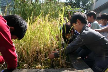 5年生 農業体験 稲刈り2 10月16日 公開日 2009/10/20 更新日 2009/10/20 今日のできごと かまの使い方を教えていただき実際に稲を刈り取りました。 あっという間に手際よく稲を刈り取ることができました。 いいね(0)