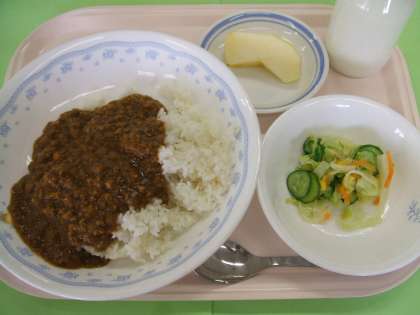 キーマカレーライス 公開日 2009/11/05 更新日 2009/11/05 給食 11月4日(水) カレーラスには、いろいろな種類があります。 豚肉を使ったポークカレーライス。 鶏肉を使ったチキンカレーライス。 今日は、ひき肉をポロポロになるまで炒めたキーマカレーライスです。 スパイスたっぷりのカレーには、肉も野菜もたくさん入っているので 栄養もバッチリです。 いいね(0)