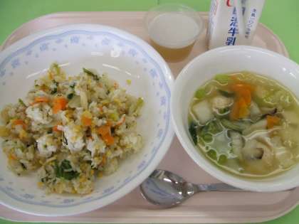 チャーハンを食べたり、スープを飲んだりして、どちらの料理も