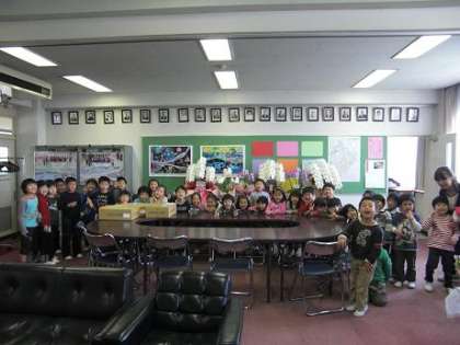 1年生校長室へ 公開日 2010/04/08 更新日 2010/04/08 今日のできごと 突然、3時間目、1年生34人が校長室へきてくれました。いろいろあたりを見回す子どもたちの眼は興味津々。最後は私の名前を覚えてかえってくれました。とってもほのぼのとするひとときでした。1年生がんばって!! いいね(0)