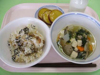 炒り豆ごはん 公開日 2010/02/03 更新日 2010/02/03 給食 2月3日(水) 今日は節分です。 冬から春への季節の変わりめです。 節分では、オニを追い出すために、炒った豆をまいたり、 いわしの頭を玄関にかざります。 大豆は「畑の肉」といわれるくらい、栄養たっぷりです。 炒り豆ごはんを食べて、福の神を呼びましょう。 いいね(0)