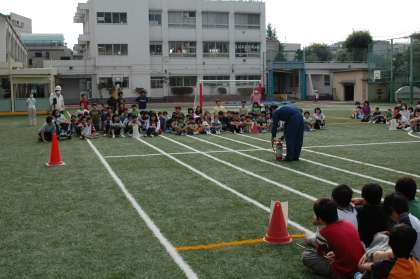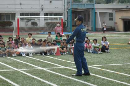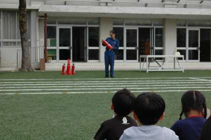 避難訓練2 10月20日 公開日 2009/10/20 更新日 2009/10/20 今日のできごと 校庭に避難したあと、初期消火訓練を行いました。実際に消火器を使って行いました。消防署の方の指導のあと、先生方、5・6年生の代表の児童が行いました。 いいね(0)