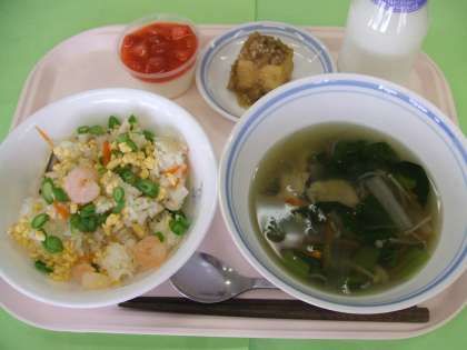 給食では、お祝いの気持ちをこめて、ちらし寿司をつくりました。