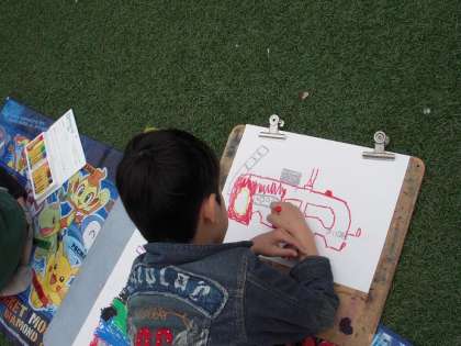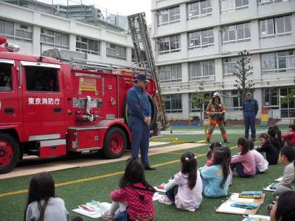 消防写生会 公開日 2010/04/20 更新日 2010/04/20 1年 3・4時間目に、消防車が校庭に来て、消防写生会が行われました。 消防士さんから話をしていただいた後、クレパスで消防車を書き始めます。 見れば見るほど、いろいろな道具が消防車に付いています。 細かいところまでよく見て書くことができました! 「黒は最後に使うんだよ〜」と、 クレパスの使い方も覚えました! いいね(0)