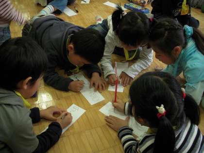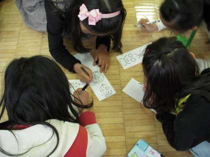 1年生は大盛り上がり!絵描き歌を教えてもらって、