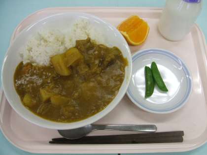 4月28日(水) 公開日 2010/04/28 更新日 2010/04/28 給食 スナップえんどうは、グリンピースの仲間です。 豆が入っている外側の部分を「さや」といいます。 グリンピースや枝豆の「さや」は、かたくて食べられませんが、 スナップえんどうは、「さや」もおいしく食べられる特別な豆です。 今がおいしい季節のスナップえんどうを食べてみましょう。 献立:ポークカレーライス スナップえんどう 清美オレンジ 牛乳 いいね(0)