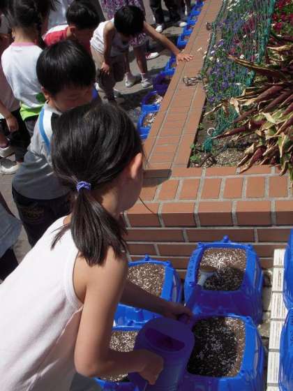 はなを そだてよう 公開日 2010/05/06 更新日 2010/05/06 1年 1年生は生活科でアサガオを育てます。今日は、種をまきました! 「うわぁ!こんなにちっちゃな種なんだね〜!」 土と肥料をまいて、1年生の教室の前に置きました。 小さな種から、大きな花が咲くまで、きちんとお世話をしていきます。 きれいな花がさくといいですね。 大切に育てていきましょう! いいね(0)