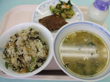 5月12日(水) 公開日 2010/05/12 更新日 2010/05/12 給食 今日は、季節の魚「カツオ」です。 カツオは高知県などあたたかい地域の海でとれる魚です。 泳ぐのが得意で、とても速く、とても遠くまで、一年中泳いで 旅をしています。 ちょうど5月頃、日本の近くに来るので、日本では今がカツオのとれる季節です。 献立:ひじきごはん かぶのみそ汁 カツオのカレー揚げ ごまあえ 牛乳 いいね(0)