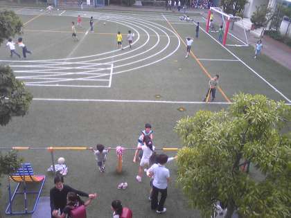 今日は暑くも寒くもなく最高の気候です。午前授業ということもあり、ランドセル広場にたくさんの子どもたちが集まり、校庭は大賑わいです。