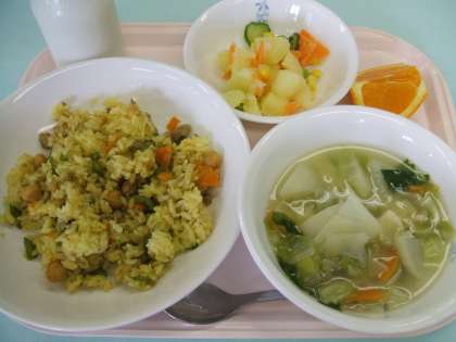 5月25日(火) 公開日 2010/05/26 更新日 2010/05/26 給食 運動会が近づいてきました。 毎日一生懸命練習する元気な声が、給食室まで聞こえてきます。 たくさん練習した後の給食は、練習と同じくらい大切です。 昼ごはんをしっかり食べると、午後も元気に過ごせます。 給食をしっかり食べて、運動会まで頑張りましょう。 献立 :カレーピラフ 野菜スープ ポテトフレンチサラダ 清見オレンジ 牛乳 いいね(0)