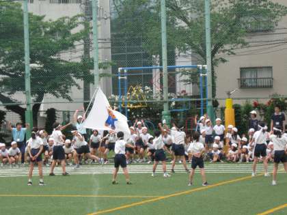 本日5月26日(水)、運動会の全校練習で、地球運び、応援合戦、全校ダンスを行いました。