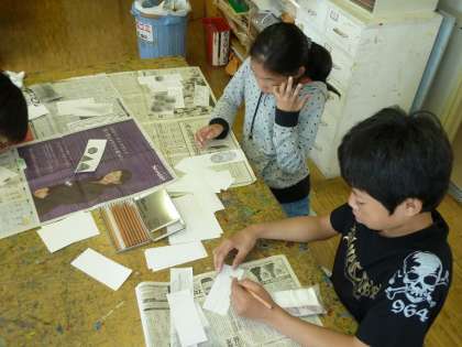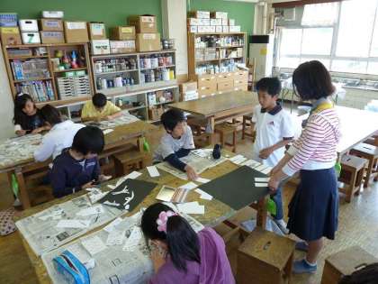 6年生は鉛筆だけを使い、白、黒、その中間色を作り出し、思い思いの作品作りに取りかかり始めました。さてどんな作品ができるのでしょうか。