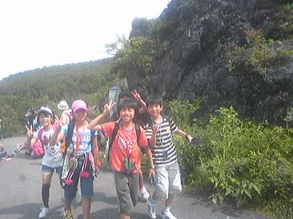 今日の野外活動の最後は浅間園で溶岩や植物の観察です。オリエンテーリング形式で出発です。そのあとはお土産タイムです。