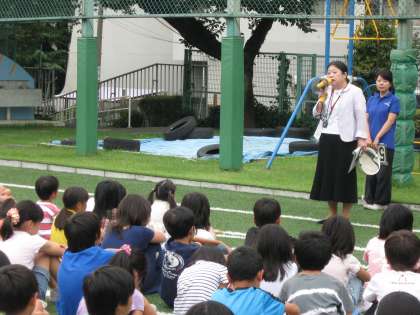 子どもたちは真剣に取り組み、「お・か・し・も(おさない・かけない・しゃべらない・もどらない)」のやくそくを守り、速やかに避難できました。集合後も静かに待ち、話を聞きました。