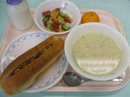 7月13日(火) 公開日 2010/07/15 更新日 2010/07/15 給食 今日のお話は保健給食委員会でつくりました。 大豆には、たくさんの栄養が含まれています。アミノ酸や食物せんいなどが その一つです。ここで問題です。 栄養のある大豆は、なんと呼ばれているでしょう。 1 畑の米 2 畑の肉 3 畑の要 答え 2 畑の肉 献立 :カレーミートパン コーンポタージュ ハムのサラダ 冷凍みかん 牛乳 いいね(0)