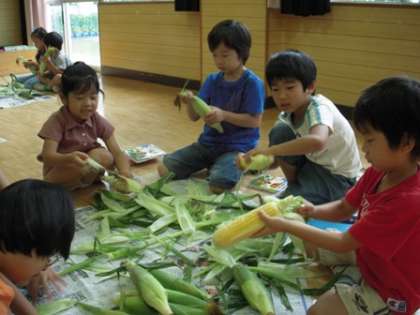 「ぼくたちの剥いたとうもろこしだ〜!」と、大喜び!