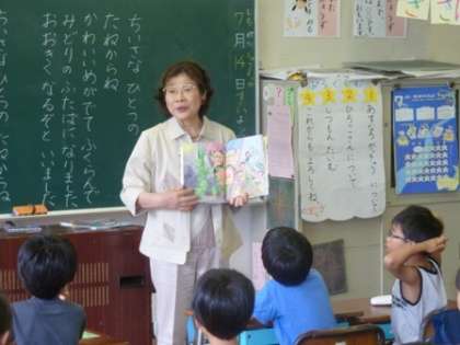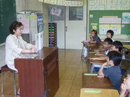 1年生は、人権擁護委員の高野先生をお迎えし、あさがおの成長を題材に人権に関する学習にとり組みました。1年生の先生の話を聞く態度の立派さに驚きました。