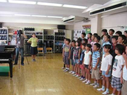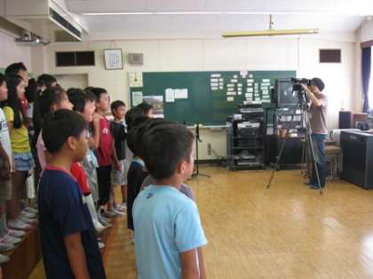 校歌撮影 公開日 2010/09/06 更新日 2010/09/06 今日のできごと 本日「学校の校歌を紹介しよう」という企画の一環で、本校の4年生が校歌の撮影をしました。多少緊張してはいましたが、子どもたちのさわやかで生き生きと歌う姿が印象的でした。この模様は、ケーブルテレビイッツコムチャンネルで、9月9日17:00〜17:30の中で放映されます。 いいね(0)
