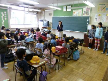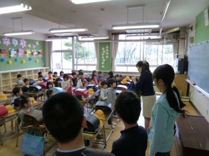 1年生も朝、きちんと自分の座席にすわり立派な態度です。お世話役の6年生もびっくりです。