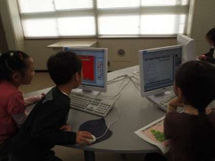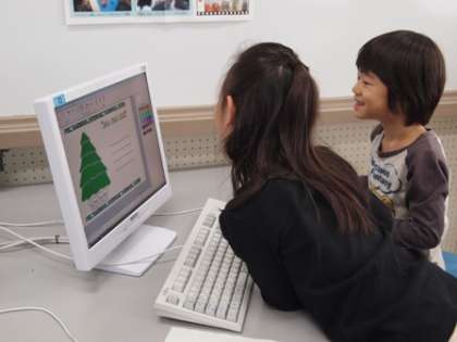 今日のパソコンの時間では、12月になったので、クリスマスカードを作りました。