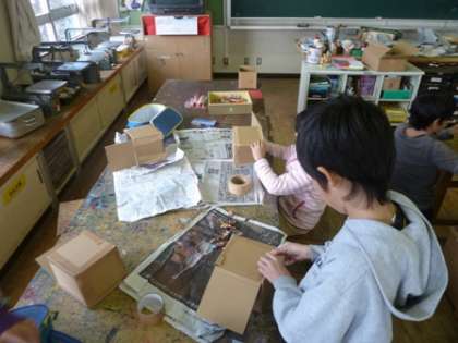 5年生の図工の次なる作品は「世界にひとつだけのはこ」です。10cm四方の立方体の中に自分だけの世界をつくっていきます。さてどんな作品ができるでしょうか。最後はライトもつくらしい・・・です。