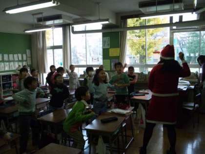 今日の英語の授業になんとALTの先生扮するサンタクロースが登場しました。子供たちはいつも以上にパワーアップして学習に取り組みました。