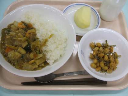 12月21日(火) 公開日 2010/12/21 更新日 2010/12/21 給食 大豆は、中国から日本に伝わって、昔からずっと食べられてきました。 大豆には、体をつくるもとになるはたらきや、骨や歯を丈夫にする はたらきがあります。 今日のじゃこ大豆あげは、栄養満点の大豆といるもより大きめのじゃこを使って かみごたえも満点です。 よくかんで、ゆっくり食べましょう。 献立 :中華丼 じゃこ大豆揚げ りんご 牛乳 いいね(0)