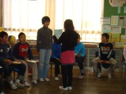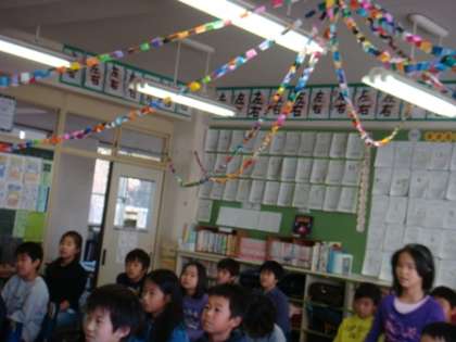 12月24日(金)・4年生は「もうすぐ冬休み・がんばった会?」を学級活動の集会で行いました。一人一人が、8月から12月までで、がんばったことを発表して、友達にはクリスマスカードを渡しました。色画用紙でていねいに作った「とびだすカード」です。「〜をがんばっていたね。」なんて、いっしょうけんめいやったことを、だれかが見ていてくれていたなんで、とってもうれしいですよね。「これからもよろしくね。」そんななにげないひとことで、友達っていいなあと感じます。