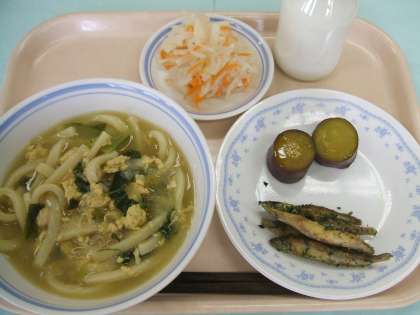 1月14日(金) 公開日 2011/01/18 更新日 2011/01/18 給食 ワカサギは氷の張った寒い湖でとれる小魚です。 人が立っても割れないくらい、厚い氷の下の冷たい水の中にいます。 からっと揚げたワカサギは、頭や骨もぜんぶ食べることができます。 カルシウムたっぷりなので、骨や歯が丈夫になります。 カリカリとした歯ごたえもおいしさです。よくかんで食べましょう。 献立 :玉子とじうどん ワカサギの唐揚げ さつま芋の甘煮 紅白なます 牛乳 いいね(0)