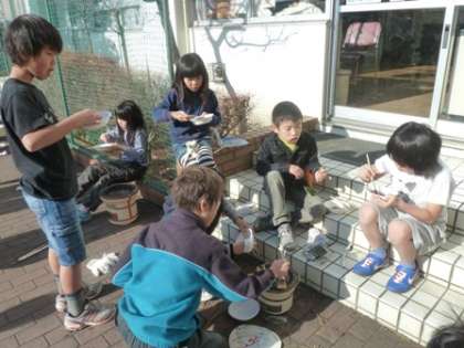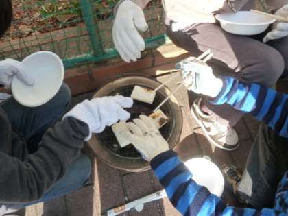 七輪体験 公開日 2011/01/21 更新日 2011/01/21 今日のできごと 普段、ガスやレンジを使って調理をしている中、3年生は、社会科の学習で、昔の道具のよさ(昔の人の知恵)を追求し、それを実際に使ってみる体験を行います。今日は、地域の方をゲストティチャーにお迎えし、七輪でお餅を焼くことに挑戦です。はじめは苦労していた子どもたちもだんだんその原理をつかみ、最後は見事にお餅を美しく焼きあげることができました。もちろん味は満点です。 いいね(0)