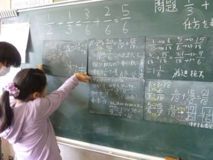 異分母分数のたし算・ひき算 公開日 2011/01/22 更新日 2011/01/22 今日のできごと 5年生では、今異分母分数のたし算・ひき算の学習をしています。単に計算ができるようになればいいというのではなく、自分の発表できるように頑張っています。 いいね(0)
