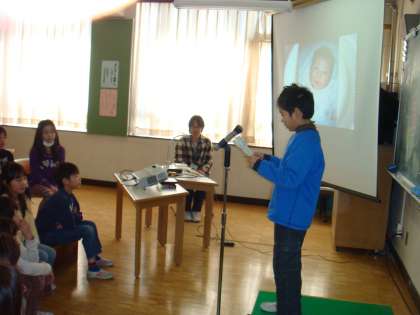 「Aちゃんかな?」「いや、Bくんだよ。」なかなか、わからないものです。正解を聞いて、「ああ〜、ほんとだ!」とあがる歓声。一人一人が、おうちの人への感謝の言葉と10年後、こうなっていたいと思うことを話しました。仲良しの4年生が10年後の本当の成人式の時、またこうやって集まって、笑いあえたら素敵です。