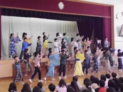 本日1月27日(金)、やまびこ集会で4年生が「菅刈寄席」を行いました。