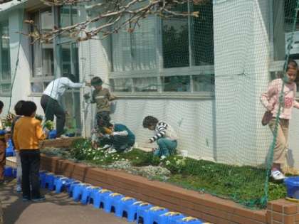 最後に使った教室を大掃除し、1年生のために花壇に花を植え、通知表をもらって平成22年度の教育課程は全て終了しました。