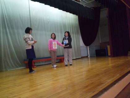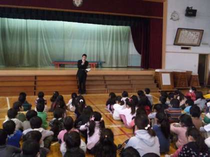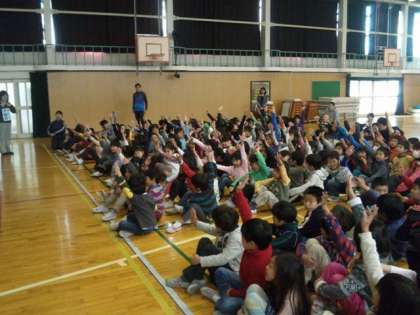 3時間目。1〜4年生は、体育館でセーフティ教室を行いました。まずはじめに先生方が劇をしながら、クイズ風に不審者対応のしかたについて説明し、次に目黒警察署の方から、お話を伺いました。子どもたちは、集中してよく学び、不審者の怖さやいざというときの対応について一生懸命考えていました。