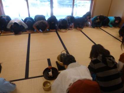茶道教室 公開日 2011/01/28 更新日 2011/01/28 今日のできごと 5・6年生は、菅刈公園の和館で、日本の伝統文化である茶道について学びました。淡交会 幹事長 山本宗敬先生のご指導のもと、お茶の作法を習い、実際にお茶をいただく体験をしました。こんな体験は菅刈小ならではです。5・6年生はどちらも真剣な表情で取り組んでいました。 いいね(0)