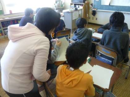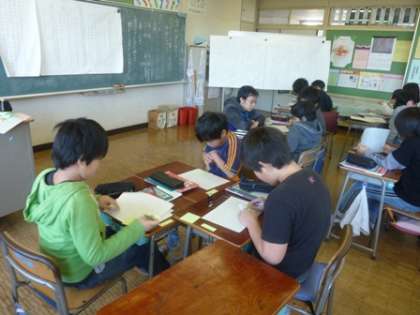 5年生は、今国語の学習で、1枚の写真から物語をつくる学習に取り組んでいます。今日は下書きの作品をどうよりよいものにできるかという視点で推敲の練習をしました。自分で考えたり、話し合ったりとみんな一生懸命です。