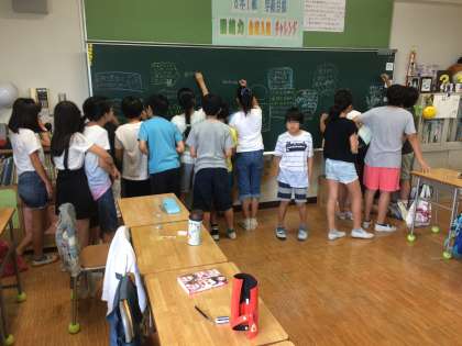 子どもたちの作品は、だれもが幸せに生きる権利を子どもたちなりに訴える内容でした。その作品のひとつを紹介します。