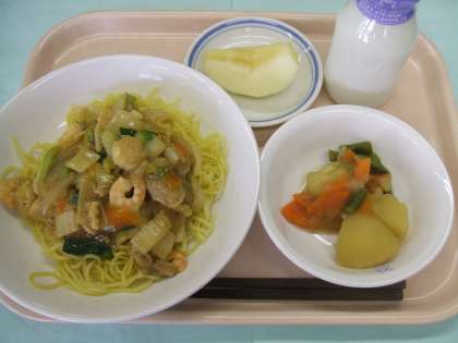 1月31日(月) 公開日 2011/02/01 更新日 2011/02/01 給食 今日のりんごは、「おうりん」という種類です。 皮がきみどり色で、とてもよい香りがします。 りんごを食べるとおなかの調子がよくなったり、カゼを防ぐ力がついて 体が元気になります。りんごをよくかんで食べると、歯やあごが 丈夫になります。 おいしく食べて、元気になりましょう。 献立 :五目あんかけそば じゃが芋のうま煮 りんご 牛乳 いいね(0)