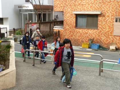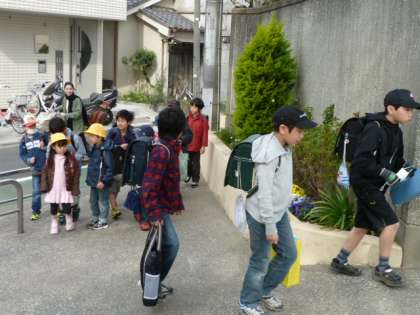 今日から6日間。新班長さんを中心に集団登校です。今日はどの班もきちんと整列して登校することができました。