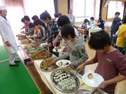 バイキング給食(2) 公開日 2011/03/10 更新日 2011/03/10 今日のできごと 6年生は、料理を見て大喜び!!マナーを確認して、いよいよ、いただきます!!みんな何度もおかわりにいって見事に完食です。 いいね(0)