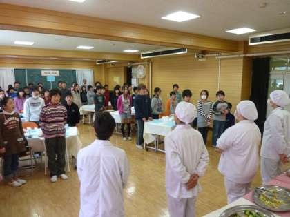 バイキング給食(3) 公開日 2011/03/10 更新日 2011/03/10 今日のできごと 最後は、栄養士さん、給食調理さんに感謝の気持ちを込めて、あいさつと歌のプレゼントです。心のこもったすばらしい歌声に給食調理さんの目から感激の涙が流れました。 いいね(0)