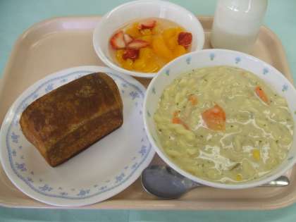 3月10日(木) 公開日 2011/03/13 更新日 2011/03/13 給食 デニッシュパンのデニッシュは、デンマーク風という意味です。 デンマークには牛がたくさんいて、牛乳やバター、チーズなどの 乳製品が豊富です。 パンにもバターをたっぷり練りこんで、パイのようなさくさくになります。 牛乳たっぷりのマカロニのクリーム煮と一緒に 乳製品たっぷりの給食になりました。 献立 :デニッシュパン マカロニのクリーム煮 フルーツポンチ 牛乳 いいね(0)
