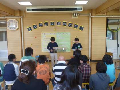 あすなろ・卒業を祝う会 公開日 2011/03/15 更新日 2011/03/15 今日のできごと 昨日、あすなろ学級の卒業を祝う会が開催されました。保護者の方々も参加し、2人の卒業生のために、在校生が出し物をしたり、卒業生が演奏をしたり、みんなで楽しいゲームをしたりしました。第2部ではティータイムがあり、その中で2人の思い出のアルバムが上映され、思い出を振り返りながら、別れを惜しみました。ぜひ、中学校でも頑張ってほしいと思います。卒業おめでとうございます。 いいね(0)