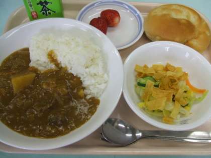献立 :カレーライス パインパン パリパリサラダ いちご お茶