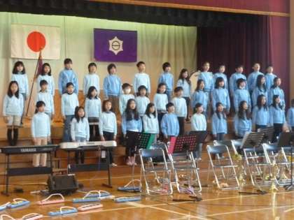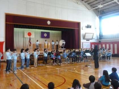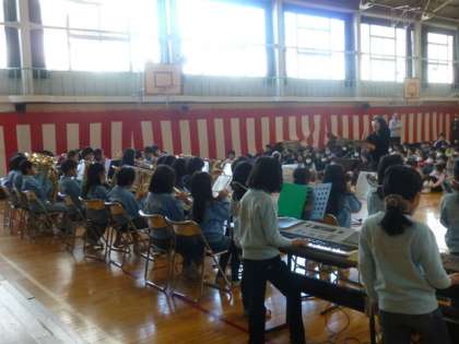ふれあいコンサート中止を受けて、ミュージッククラブは18日朝の時間を活用して全校児童を前に、歌と演奏を披露しました。3ヶ月以上に及ぶ練習の成果を15分間にこめ、精一杯の姿に心から感動しました。