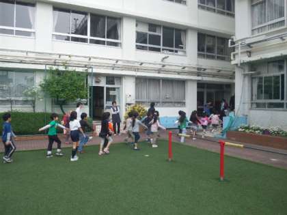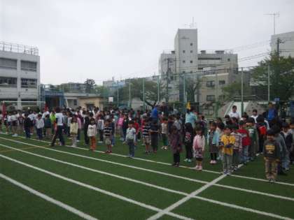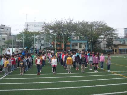 今日は体育朝会です。運動会に向け整列や行進の練習をしました。