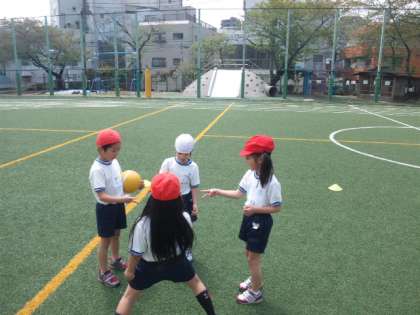 2年生は昨日平川先生に教えていただいたはしごドッジボールを楽しみました。みんな昨日より上手になりビックリです。
